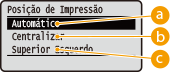 Se os dados TIFF contêm as informações que especificam a posição de impressão, a imagem é impressa de acordo com as informações, caso contrário, ela é impressa no centro do papel. Dados JPEG são sempre impressos no centro do papel.