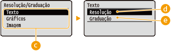 Selecione o tipo de imagem para o qual você deseja alterar a configuração. <Texto> representa letras e caracteres, <Gráficos> representa linhas e figuras, e <Imagem> representa fotos e outros tipos de imagens.