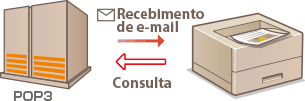 Quando o recebimento de e-mails é iniciado, todos os e-mails armazenados na caixa postal do servidor de e-mail são impressos. Se você enviar e-mails que você deseja imprimir para a máquina com antecedência, você pode imprimir automaticamente os e-mails em intervalos regulares ou imprimir todos os e-mails armazenados em dado momento.