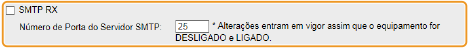 Marque a caixa de seleção para ativar a Impressão de e-Mail usando o protocolo SMTP. Também é possível especificar esta configuração usando <SMTP RX> no menu de configuração do painel de operação (