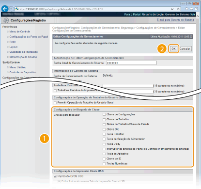 Você pode restringir o uso das teclas no painel de operação para evitar que as configurações da máquina sejam inadvertidamente alteradas.