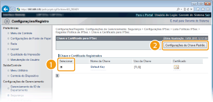 Selecione o par de chaves que deseja usar e clique em [Configurações de Chave Padrão].