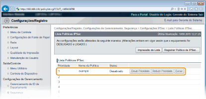 Usando o painel de operaçõesVocê também pode ativar ou desativar a comunicação IPSec no menu de configuração do painel de operação. IPSec