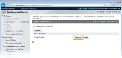 Clique em [Registrar] à direita do certificado CA que você deseja registrar.