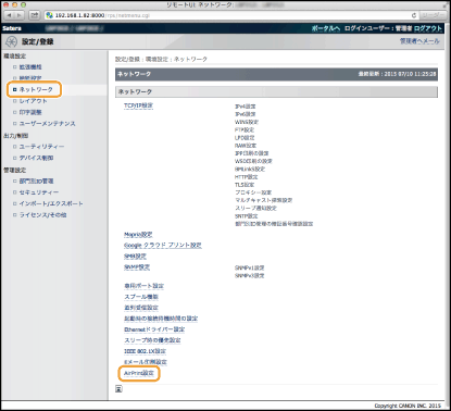 本機を識別するための名称や設置場所を登録できます。AirPrintを使用できないように設定することもできます。設定はリモートUIを使って行います。