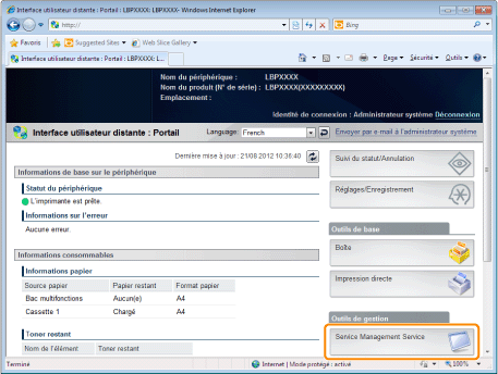 Saisissez "https://<Printer's IP address>:8443/sms/" dans la barre d'adresses, puis appuyez sur la touche [ENTREE] du clavier.