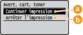 <Continuer impression> ou <Arrêter l'impression>
