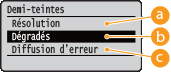 La stabilité de la texture et la fixation du toner peuvent être réduites lorsque la <Diffusion d'erreur> est utilisée.
