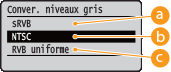 Astérisques (*)Les réglages signalés par un astérisque (*) ne sont pas affichés si certains autres réglages sont utilisés ou si une carte SD en option est installée sur l'appareil.