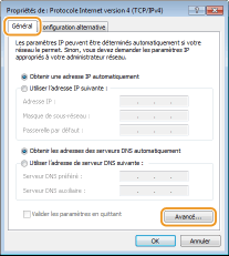 Cochez la case [Protocole Internet version 4 (TCP/IPv4)] ou [Protocole Internet] et cliquez sur [Propriétés].