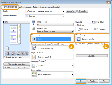 Dans [Ordre des pages], Sélectionnez la disposition des pages