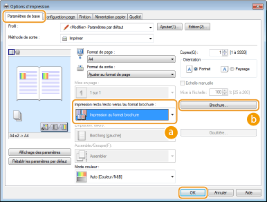 Sélectionnez [Impression au format brochure] dans [Impression recto/recto verso/au format brochure ]