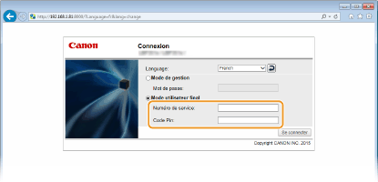 Saisissez l'ID dans [Numéro de service], puis le code PIN dans [Code PIN].