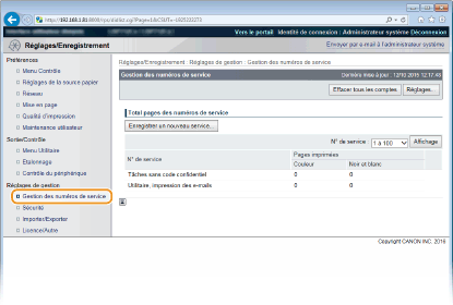 Cliquez sur [Gestion des numéros de service] et enregistrez ou modifiez les numéros de service.