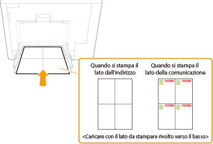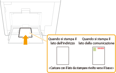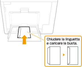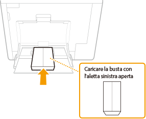 In questa sezione viene descritto come caricare le buste con l'orientamento preferito, oltre alle procedure necessarie da eseguire prima di caricare buste o cartoline. Per la procedura generale di caricamento buste o cartoline nel vassoio multiuso, vedere Caricamento della carta nel vassoio multiuso.