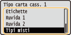 Selezionare una delle opzioni da <Tipo carta cass. 1> a <Tipo carta cass. 4>, quindi premere