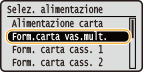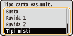 Selezionare <Tipo carta vas.mult.>, quindi premere