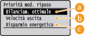 Questa voce è disponibile quando l'opzione <Modalità riposo> è impostata su <Alto (Riposo prol.)>. Attivazione della modalità di riposo