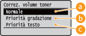 È possibile ridurre la stabilità della trama e del toner fissato quando si usa <Diffusione errore>.