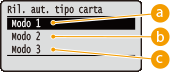 Questa opzione è abilitata quando <Ril. aut. tipo carta> nel Menu Selez. alimentatore è impostata in modo diverso da <Non usare>.