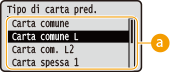 Impostazioni comuniLe impostazioni sono le stesse di quelle per <Alimentazione carta> nel Menu Configurazione. Le impostazioni specificate qui vengono applicate anche alle impostazioni di <Alimentazione carta>.