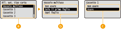 Quando questa funzione è abilitata, la macchina potrebbe non essere in grado di stampare correttamente. Se la macchina non può stampare correttamente, impostare questa funzione su <Non usare> e specificare il tipo di carta dal driver della stampante prima di riprovare a stampare.