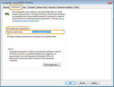 Potrebbe non essere possibile installare i driver in rete in base al sistema operativo e all'architettura bit (32 bit o 64 bit) del server di stampa e dei computer client.