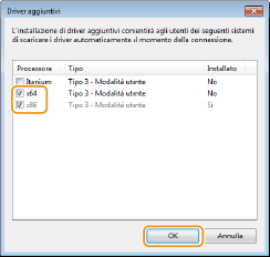 ![]() Selezionare driver aggiuntivi di seguito, in base al sistema operativo del server di stampa.