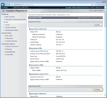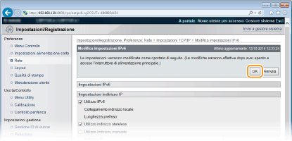 Fare clic su [Modifica] in [Impostazioni IPv6].