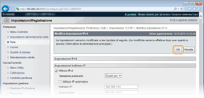Fare clic su [Modifica] in [Impostazioni IPv4].