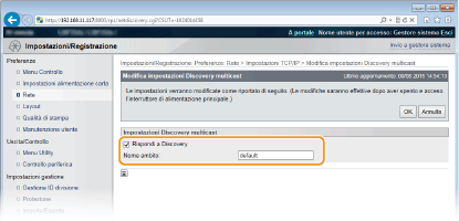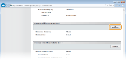 È possibile abilitare o disabilitare la risposta della scoperta anche dal menu delle impostazioni del pannello operativo. Risposta a Discovery