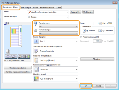Selezionare il formato carta in [Formato stampa]