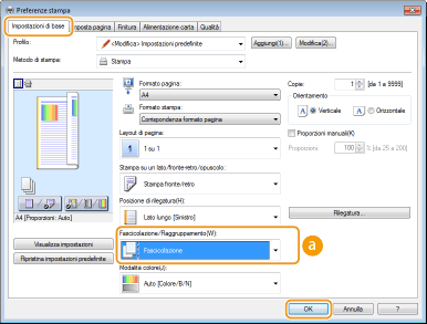 Selezionare [Fascicolazione] o [Raggruppamento] in [Fascicolazione/Raggruppamento]