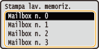 Selezionare il numero della mail box del documento da stampare, quindi premere