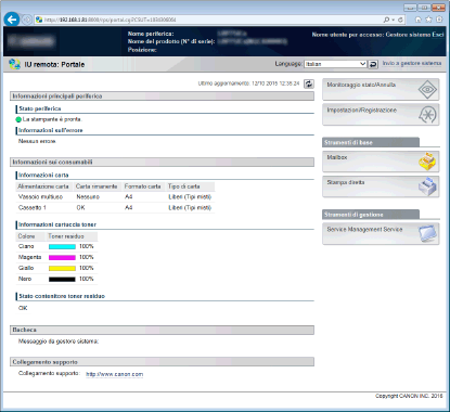 Digitare "http://(indirizzo IP della macchina)/" nella barra degli indirizzi e premere tasto [INVIO].