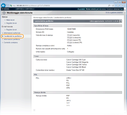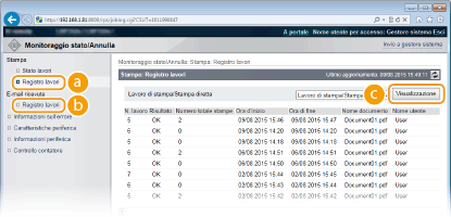 Lo stato di tutti i lavoro di stampa viene visualizzato indipendentemente dalle impostazioni di Gestione ID reparto.