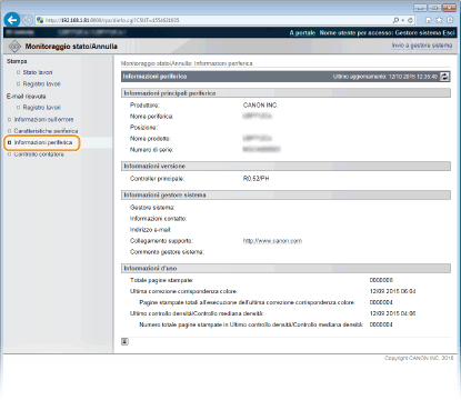 [Impostazioni gestione] nella pagina [Impostazioni/Registrazione] (Impostazione della password del Gestore sistema).