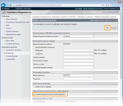 Selezionare la casella di controllo [Consenti operazione lavori utente generico] e fare clic su [OK].