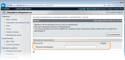 Specificare il file di impostazione da importare, quindi immettere la password.
