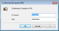 Quando si cerca di stampare da un computer con Gestione ID reparto abilitato, viene visualizzata la seguente schermata a comparsa (a meno che la casella di controllo [Confermare ID reparto/PIN durante la stampa] non sia deselezionata):