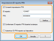 Selezionare la casella di controllo per visualizzare la finestra a comparsa [Confermare ID reparto/PIN] ogni volta che si stampa dal computer.