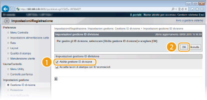 Selezionare la casella di controllo [Abilita gestione ID divisione] e fare clic su [OK].