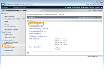 Digitare la password del Gestore sistema in [Password gestore sistema corrente].