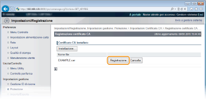 Fare clic su [Registra] a destra del certificato CA che si desidera registrare.