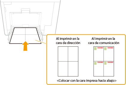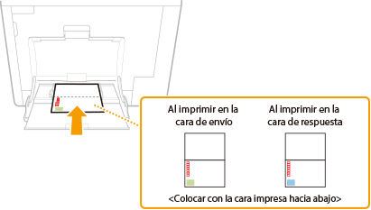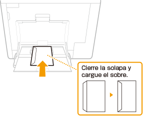 En esta sección se describe cómo cargar sobres en la orientación deseada, así como los procedimientos que debe seguir antes de cargar sobres o tarjetas. Para ver el procedimiento general para cargar sobres en la bandeja multiuso, consulte Carga de papel en la bandeja multiuso.