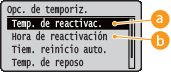 en el panel de control. También puede utilizar la opción Tiempo de reposo automático para establecer automáticamente el modo de reposo del equipo si permanece inactivo durante un período de tiempo especificado. Puede especificar las opciones para cambiar el intervalo con que se activa la función de reposo automático o poner el equipo en modo de reposo a una hora concreta.