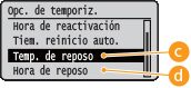Al encender el equipo, el tiempo que debe transcurrir antes de entrar en el modo reposo podría ser más largo que el especificado en el menú.