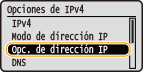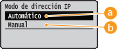 Seleccione <Usar DHCP>, <Usar BOOTP> o <Usar RARP> y pulse