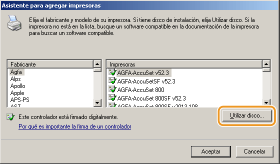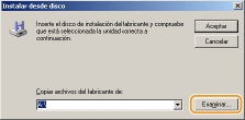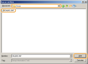 Especifique la carpeta que contiene los controladores de impresora, seleccione el archivo INF y haga clic en [Abrir].