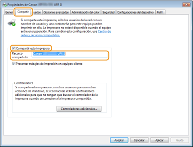 Comienza la instalación de los controladores adicionales. Espere a que vuelva a aparecer la pestaña [Compartir].